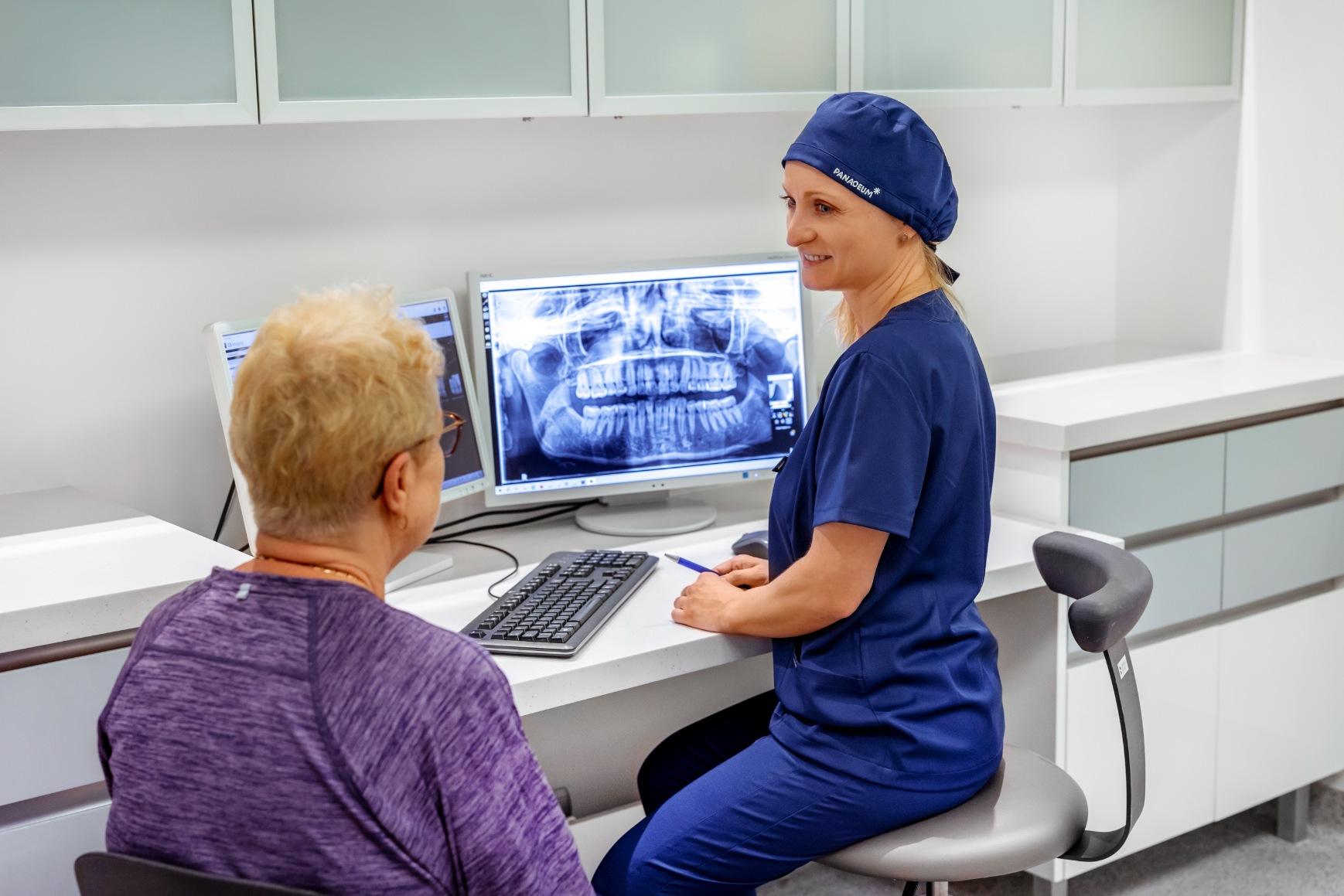 Regularna kontrola u stomatologa pozwoli ocenić stan zarówno implantów, jak i samej protezy – a w razie potrzeby zaplanować jej wymianę na nową.